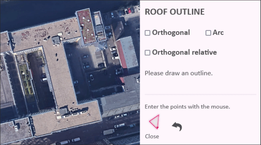 With the previously known “Orthogonal” function, right angles on straight building outlines can be traced very easily and quickly. Thanks to the built-in automatic, there was no need to worry about precision. This function has now been meaningfully expanded: with the new “Orthogonal relative” mode, the orientation of the image no longer matters. The next point of the line to be drawn is automatically entered at a right angle relative to the previously drawn line.