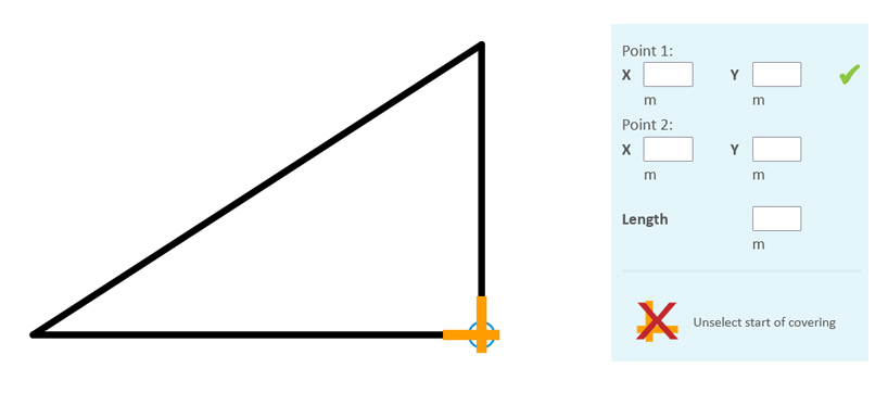 Previously, the start of covering was automatically set by an algorithm based on criteria such as the longest line or the nearest 90° angle. In most cases, this results in an optimal installation of the insulation boards – but there are also situations in which your expertise and experience could enable an even better solution. Especially for layouts with different angles or special shapes, such as those with bulges, manually defining the start of covering can ensure that more whole boards can be used, thus reducing waste.